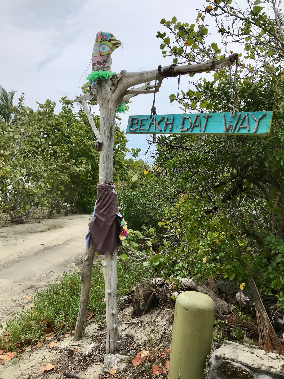 | Beach treasure art! We find it, George paints it and we hang it up on the beach with others who leave their boat names as well. |