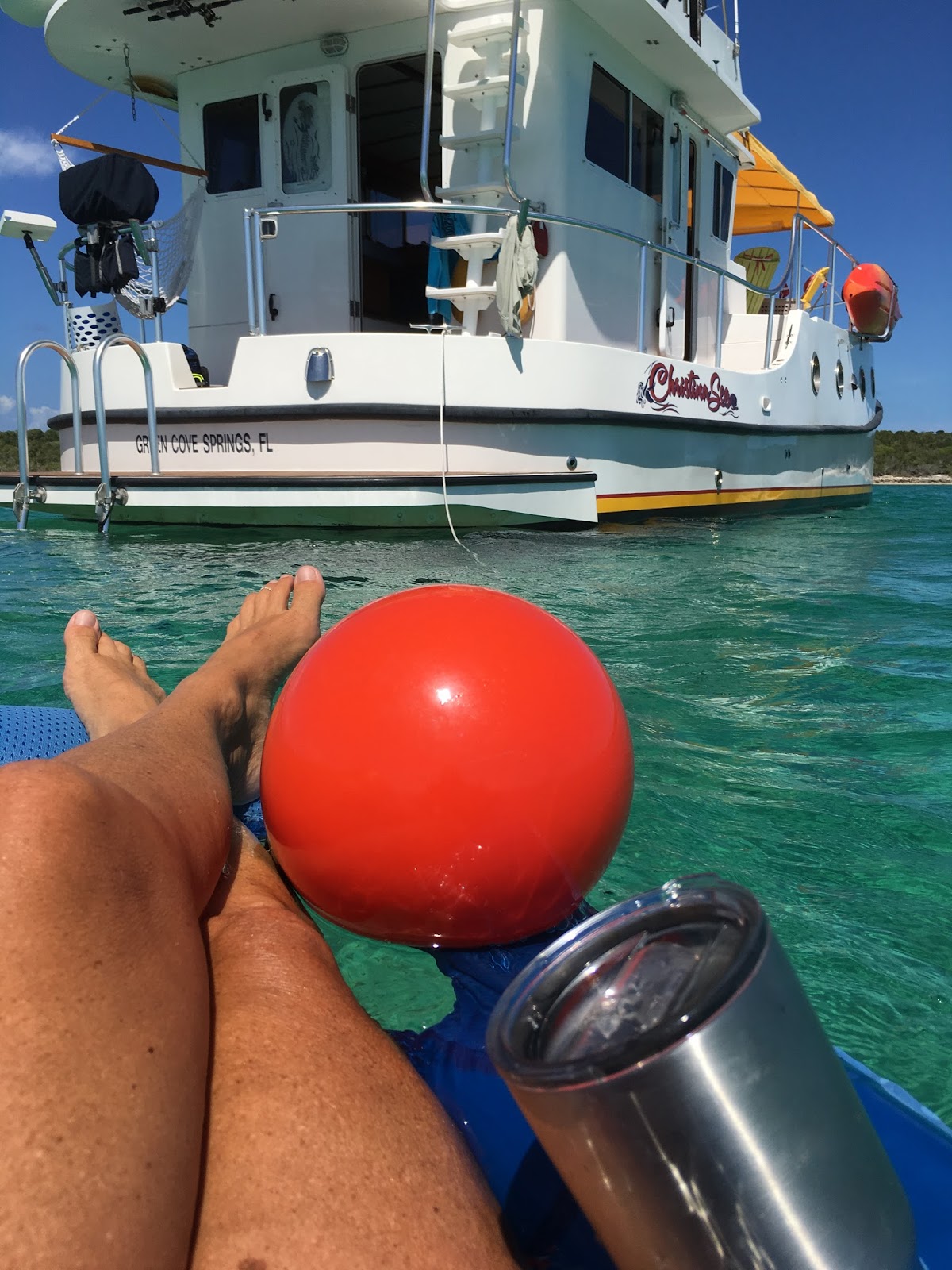| Notice the RTIC (thanks to Scott and Debbie), red ball with line holding me on to the Christina Sea - just chillin'! |