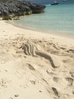Warderick Wells Cay - July 2016. This island is a National Park and is protected which means you take nothing, dead or alive and you leave only footprints. There are many trails throughout that are marked with piles of rocks. So George decided we should build a rock mermaid! We not only left our footprints, but we left our mermaid as well.